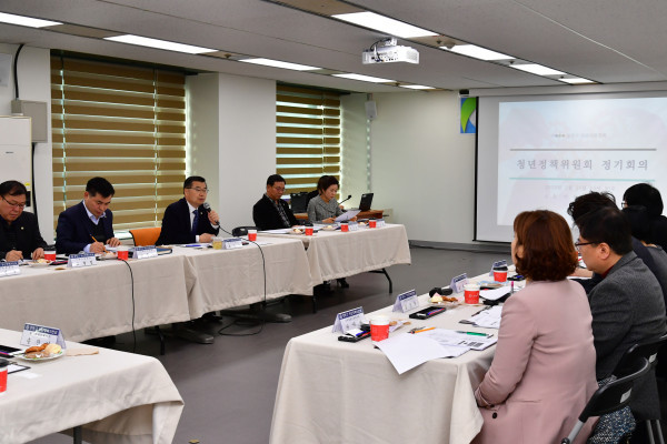 중랑구는 최근 구청 4층 다목적회의실에서 지역내 청년대표 등 18명이 참여한 가운데 청년정책위원회 정기회의를 개최했다. 청년정책위원회는 구의 청년정책을 심의하고 자문하는 기구로서 위촉직 13명, 당연직 7명 등 총 20명으로 구성해 지난해 12월 출범했다. 사진은 회의에 참여한 류경기 구청장이 발언하는 모습. (사진제공=중랑구청)