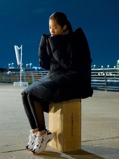 공개된 사진 속엔 러닝복 차림의 임화영이 두꺼운 점퍼를 입고 대기 중인 모습이다.