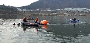 이번 훈련은 해빙기 얇아진 얼음으로 인하여 예기치 못한 수난사고 발생 시 안전하고 신속한 구조 활동을 펼치기 위해 구조대에서 보유중인 제트스키2대 및 고무보트 기동훈련과 수중영상탐색장비(R.O.V)등을 활용한 수중탐색구조 방법, 리프팅 백(공기부양장비)을 활용한 구조물 인양과 인명구조 훈련 , 수난사고현장에서의 대원 안전사고 방지교육, 수중인명탐색 등 다양한 사고를 가정한 훈련을 실시했다.
