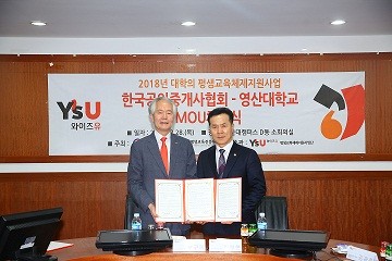 와이즈유(영산대학교, 총장 부구욱) 평생교육대학(학장 심미경)은 지난28일 해운대캠퍼스에서 한국공인중개사협회(회장 박용현)와 ‘평생학습 협력기업 상호협약(MOU)’을 체결했다.