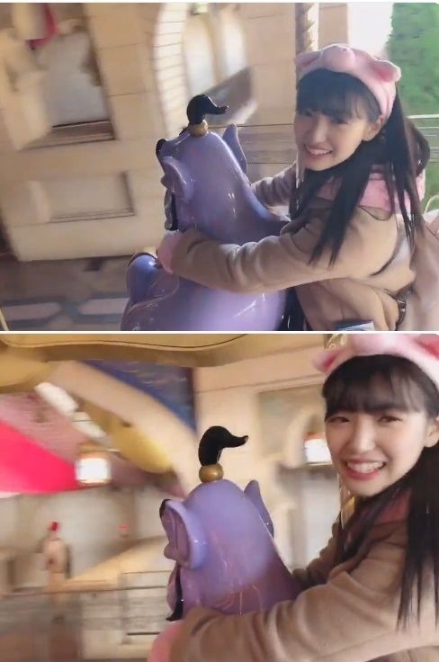 공개 된 영상 속에는 미우가 디즈니랜드 속 회전목마를 즐겁게 타고 있는 모습이다.