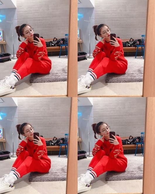 비니는 지난 25일 오마이걸 공식 인스타그램에 "오늘의 빈 #레드빈"이라는 문구와 함께 여러 장의 거울 셀카를 공개했다.