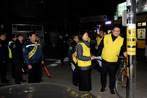 경기 오산시의회가 '안전한 오산시 만들기'를 위해 최근 시의원 전원과 4개 방범순찰대, 오산지구대 등과 함께 지역내 우범지역을 대상으로 야간순찰을 진행했다. 사진은 시의원들이 '도움벨'을 살피고 있는 모습. (사진제공=오산시의회)