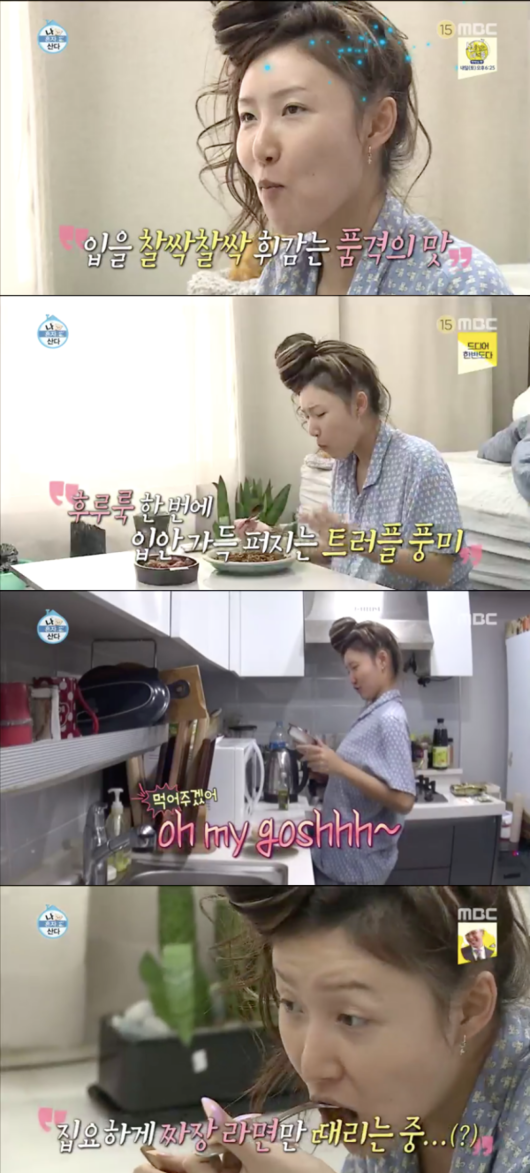 ‘나 혼자 산다’의 화사가 짜장라면에 트러플 오일을 더한 특급 비법으로 시선을 사로잡았따.