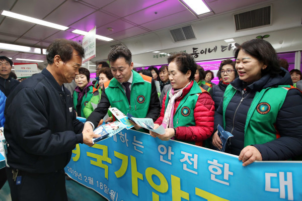인천 동구는 4일 송림 오거리와 현대시장을 중심으로 안전점검 캠페인을 펼쳤다. 이날 허인환 구청장 및 관계공무원 등 100여명이 전통시장 안전점검 등을 실시했다. 사진은 허 구청장(오른쪽에서 세번째)이 홍보 전단지를 나눠주는 모습. (사진제공=동구청)