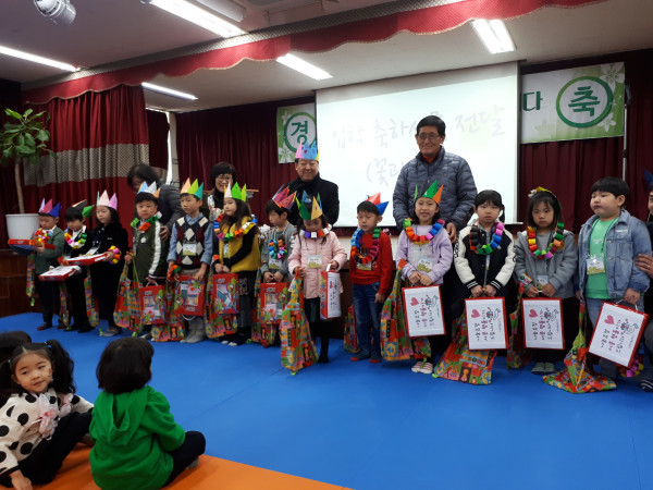 경기 양평군 서종면 행복돌봄추진단은 4일 지역내 초등학교 3곳에 입학하는 초등학교 1학년 신입생 75명을 대상으로 '입학 축하선물'을 전달했다. 사진은 이날 전달식에서 관계자들이 아이들에게 선물을 전달한 후 아이들과 기념촬영을 하는 모습. (사진제공=양평군청)