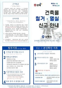 김해시는 건축물 철거․멸실 미 신고 시 과태료가 부과된다고 밝혔다.