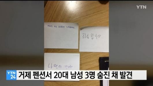 한편 23일 경남 거제경찰서에 따르면 전날(22일) 저녁 6시 25분경 거제시의 한 펜션에서 20대 남성 3명이 사망한 채 발견됐다. 거제 펜션 사망자들은 각각 인천과 부산 지역 청년들로 파악됐으며 "먼저 간다" "죄송하다"라는 등의 유서를 각각 남긴 것으로 알려졌다.
