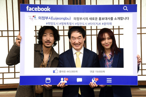 경기 의정부시는 5일 시 신규 홍보대사 위촉식을 개최했다. 신규 위촉된 타이거JK, 윤미래 홍보대사는 의정부에 거주하는 시민이며, 방송인이자 가수다. 사진은 안병용 시장과 타이거JK, 윤미래씨가 기념촬영을 하는 모습. (사진제공=의정부시청)