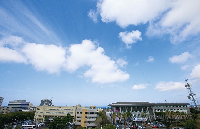 제주에 내려졌던 미세먼지·초미세먼지 주의보가 모두 해제된 6일 제주시 연동 제주도청 옥상에서 바라본 파란 하늘.