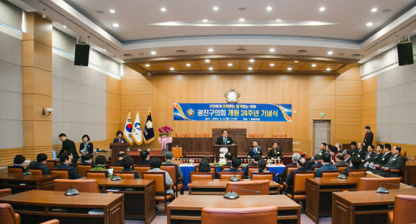 이번 구의회 개원 기념식은 1995년 3월1일, 성동구에서 광진구로 분구된 이후 24년간 풀뿌리 민주주의 근간으로 지방자치의 역사를 함께해 온 구의회를 기념하고, 지방의회 역할의 중요성이 강조됨에 따라 구민이 행복한 진정한 지방자치 실현을 다짐하며 구민에게 희망 주는 의회로 거듭나고자 역대의장 및 의정회 회원, 유관기관장 등이 함께했다.