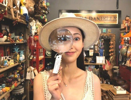 다른 사진에서는 장난감 가게에서 돋보기를 손에 쥐고 재미있는 표정을 짓고 있다. 나혜미의 장난스러운 모습에 시선이 간다.