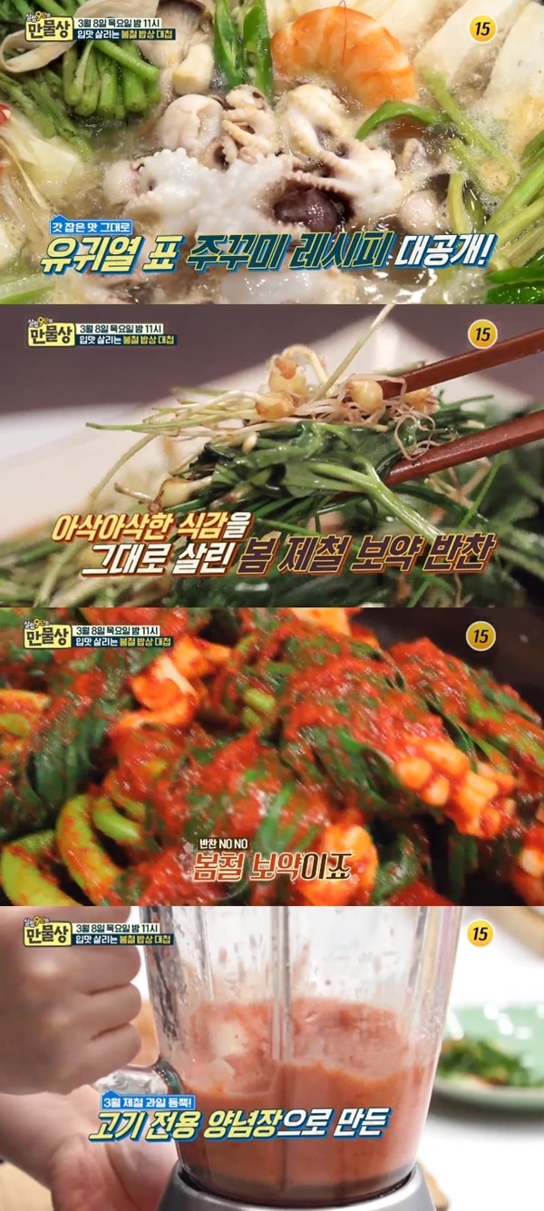 지난 8일 방송된 TV조선 예능프로그램 ‘살림 9단의 만물상’에서는 봄철 밥상 대첩이란 주제로 그려졌다.
