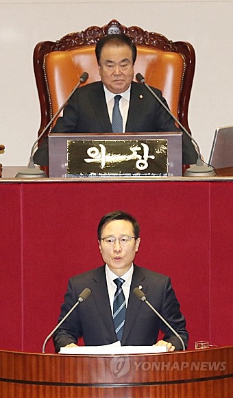 더불어민주당 홍영표 원내대표가 11일 오전 국회 본회의장에서 교섭단체 대표연설을 하고 있다.