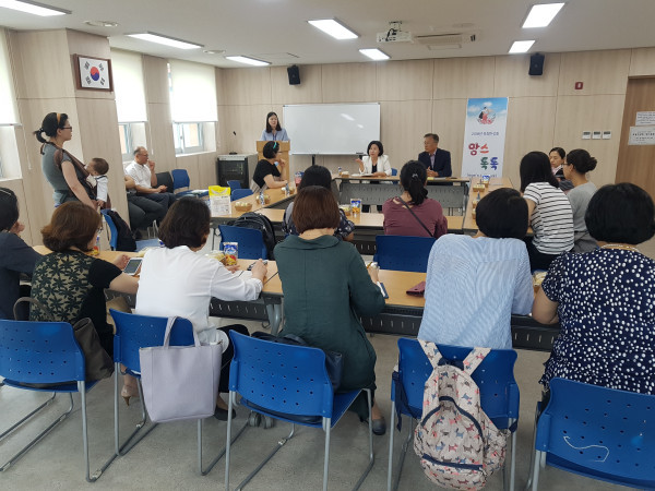 | ▲ 보육반상회 '맘스톡톡'에 참여한 관계자들이 이야기를 나누고 있다. (사진제공=동작구청) | ||