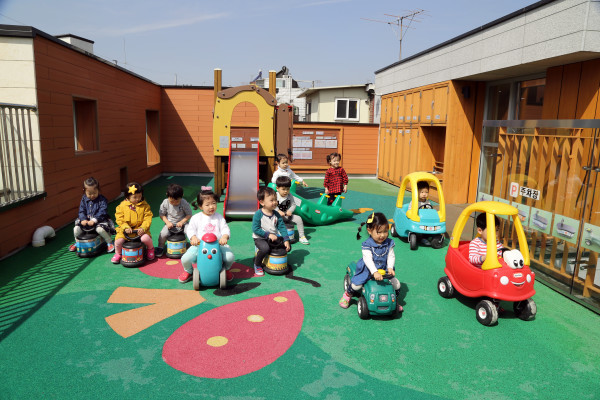 | ▲ 구립대방 보듬이나눔이 어린이집 아이들이 장난감 차를 타며 즐거워 하고 있다. | ||