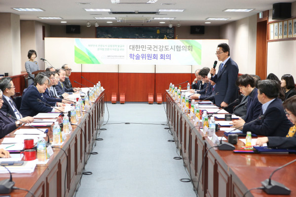 대한민국건강도시협의회 의장도시인 종로구는 최근 구청 기획상황실에서 '제19차 대한민국건강도시협의회 학술위원회 회의'를 개최했다. 구는 이날 회의에서 학술위원 22명을 위촉했다. 사진은 김영종 구청장이 발언하고 있는 모습. (사진제공=종로구청)