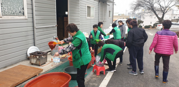 경기 양주시 남면 새마을부녀회는 지난 15일 남면행정복지센터에서 ‘사랑의 고추장 담그기’ 행사를 진행했다. 이날 행사에 참여한 새마을 부녀회 회원은 직접 고추장을 담가 지역내 홀몸노인 등 어려운 이웃 100가정에 전달했다. 사진은 참여자들이 고추장을 담그고 있는 모습. (사진제공=양주시청)