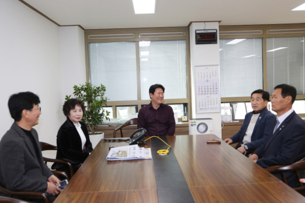 경기 연천군 새마을부녀회는 지난 18일 군청을 방문해 ‘2019년 구석기 겨울여행 축제’ 부스 운영 수익금 중 일부인 300만원을 지역내 어려운 이웃을 위해 써달라며 기탁했다. 사진은 김광철 군수(가운데)와 회원들이 대화하는 모습. (사진제공=연천군청)