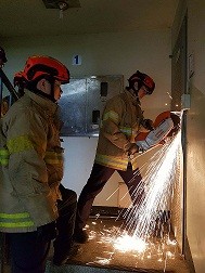 양산소방서(서장 김동권)는 지난 13일부터 20일까지 오전 10시부터 전 직원 (외근부서 160여명 및 내근부서 50여명)을 대상으로 특정소방대상물의 화재 시 인명구조 및 화재 진압을 위해 양산시 물금읍 소재 철거예정중인 재개발 아파트를 대상으로 방화 문 개방훈련을 실시했다고 밝혔다.