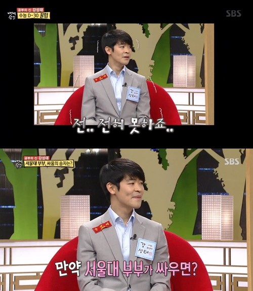 "아내도 서울대 출신이더라. 부부싸움 하면 누가 이기냐"는 질문에 강성태는 "내 고등학교 후배다. 연애할 때는 착하고 공손하더라. 결혼하고 나니까 그런 모습은 하나도 찾아볼 수가 없다"고 말했다.