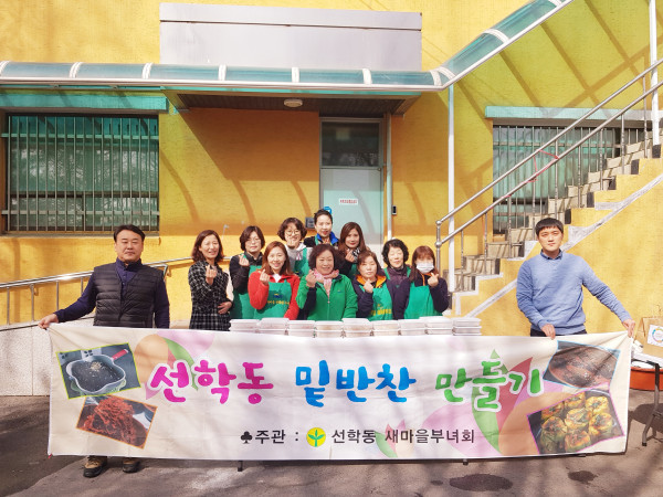 인천 연수구 선학동 새마을부녀회는 최근 지역내 노인과 소외계층을 위한 사랑의 밑반찬 만들기 행사를 개최했다. 참여 회원들은 계란장조림, 새우볶음, 오뎅 볶음 등 1kg 상당의 반찬을 저소득층 50가구에 전달했다. 사진은 참여자들이 기념촬영을 하는 모습. (사진제공=연수구청)