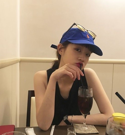 공개된 사진 속엔 식사자리에서 모자를 쓴 박보람이 셀카 사진을 찍는 모습이다. 노슬리브 상의에 새초롬한 표정이 눈길을 끈다.