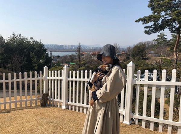 공개된 사진에는 야외 애견카페에서 반려견을 포근히 안고 미소짓고 있는 그녀의 모습이 담겼다.