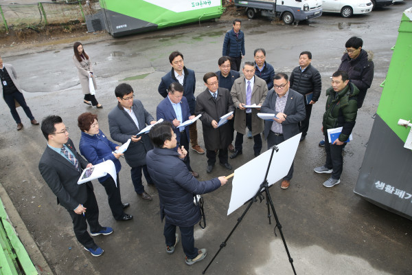 현장을 둘러본 재무건설위원들은 청소차량뿐만 아니라 제설장비 보관소인 청소차고지에서 의원들은 차고지 관리현황과 현장 근무자의 근무환경, 청소차량 청결 유지, 적환장 설치, 악취 등 주민피해 예방 노력 등을 당부하고 시설을 구석구석 둘러보며 근무자들이 안전하게 작업할 수 있도록 다각도로 살펴볼 것을 구청 집행부와 대행업체에 당부했다.