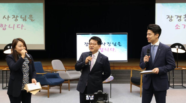 하나금융그룹 명동사옥 대강당에서 열린 이날 취임식은 장사장과 하나카드 직원들이 자유롭고 진솔하게 소통하는 토크쇼 형식으로 진행됐다.