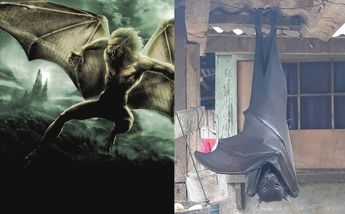 외모 또한 영화 속 드라큐라처럼 무시무시한 모양새다. 과거 박쥐는 드라큘라를 상징하는 동물이었다. 특히 '반 헬싱'에 나타난 드라큘라 및 흡혈괴물과 황금볏과일박쥐는 닮은 외모다.