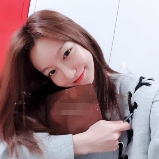 사진 속 신소율은 팩을 끌어안고 환한 미소를 짓고 있다. 신소율의 눈웃음이 남심을 사로잡는다.