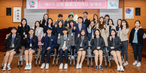 최근 인천 계양구가 구청 7층 신비홀에서 ‘2019년 계양구 제5기 신비 블로그 기자단’ 발대식을 개최했다. 기자단은 학생 기자 8명, 일반인 기자 25명으로 구성됐다. 사진은 발대식 후 기념촬영을 하는 블로그 기자단들의 모습. (사진제공=계양구청)