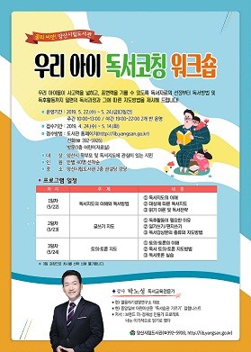 양산시립도서관은 학부모와 독서지도에 관심이 있는 시민을 대상으로 독서자료 선정에서부터 독서방법 및 독후활동까지 일련의 독서과정과 그에 따른 지도방법을 제시함으로써 ‘우리 아이 독서코칭 워크숍’을 운영한다.
