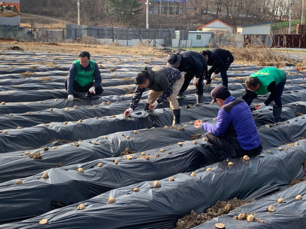 최근 경기 수원시 권선구 평동 새마을지도자협의회는 오목천동에 위치한 새마을텃밭에서 '사랑의 감자심기 행사'를 진행했다. 사진은 새마을지도자협의회 회원들이 감자씨 파종을 하고 있는 모습. (사진제공=수원시청)