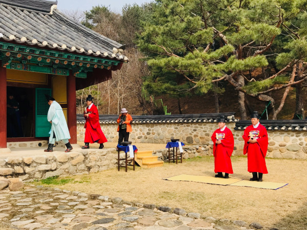 경기 남양주시는 최근 정약용유적지에서 정약용 선생의 서세 183주년을 기념하는 추모제향을 봉행했다. 제향은 정약용유적지 문도사(사당)에서 경건한 분위기 속에 봉행됐다. 사진은 관계자들이 추모제향을 봉행하고 있는 모습. (사진제공=남양주시청)