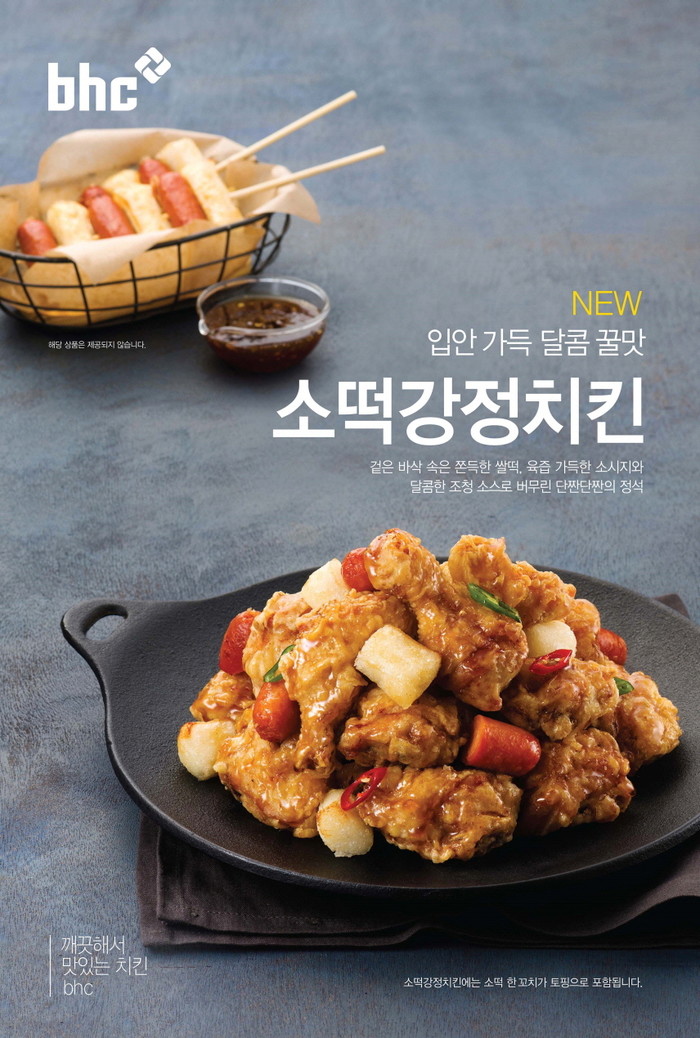 국민 간식인 소떡소떡과 치킨을 접목한 ‘소떡강정’ 치킨은 바삭하게 튀겨낸 치킨에 쫀득한 쌀떡과 육즙 가득한 소시지를 달콤한 조청 소스로 버무린 강정치킨이다. 특히 황골 조청과 쌀 엿 등의 달콤함과 레몬청의 새콤함이 어우러진 조청 소스를 코팅해 치킨의 육즙과 바삭함이 오랫동안 유지할 수 있는 것이 특징이다.