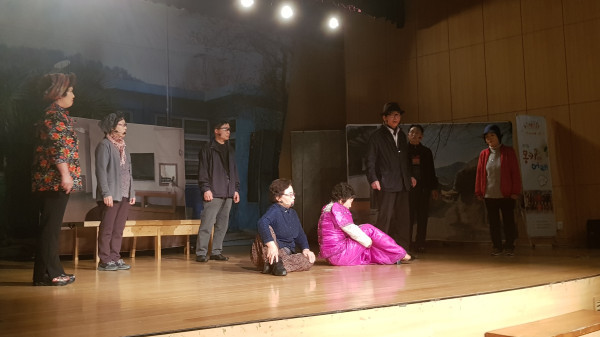 경기 남양주시 노인복지관 소속 시니어뮤지컬단은 3일 오남도서관 어울림홀에서 다문화가정을 소재로 한 창작뮤지컬 ‘몽키면 어때’를 선보였다. 시니어뮤지컬공연단은 은퇴한 실버세대들로 구성된 동극단이다. 사진은 공연이 진행되고 있는 모습. (사진제공=남양주시청)