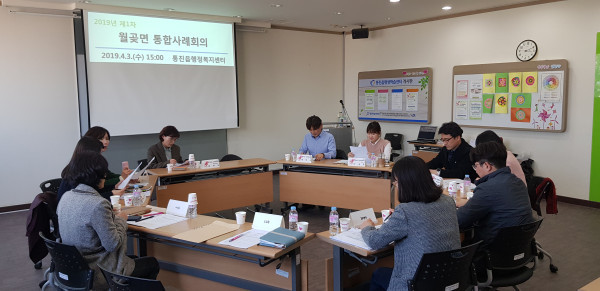 경기 김포시 월곶면 행정복지센터는 지난 3일 '2019년 제1차 월곶면 통합사례회의'를 개최했다. 이날 통합사례회의는 해외이주 주민등록 말소자로 은둔해 살고있는 여성의 문제를 공유하고, 해법을 찾고자 복지과 희망복지팀, 통진읍 맞춤형복지팀, 하성면 맞춤형복지팀 등 4개 기관 실무자 11명이 참석해 진행됐다. 사진은 참여자들이 회의하는 모습. (사진제공=김포시청)