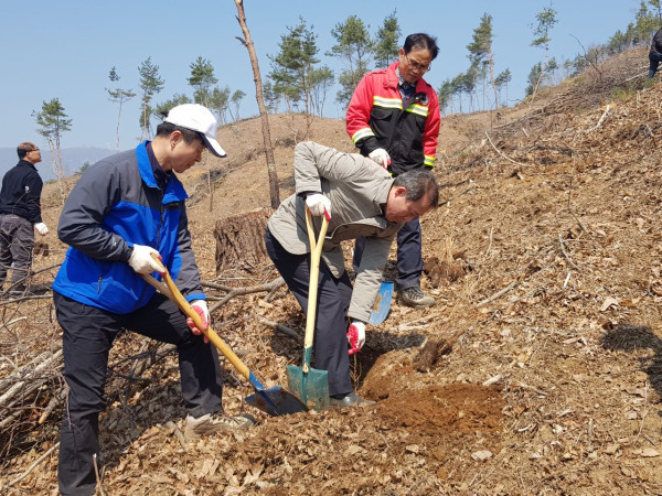 경기 양평군은 4일 2019년 봄철 조림사업 예정지인 용문면 조현리 산31-1번지에서 ‘새로운 미래 100년의 시작 새 산 새 숲 숲속의 양평’을 주제로 제74회 식목일 나무심기 행사를 가졌다. 사진은 참여자들이 나무를 심고 있는 모습. (사진제공=양평군청)
