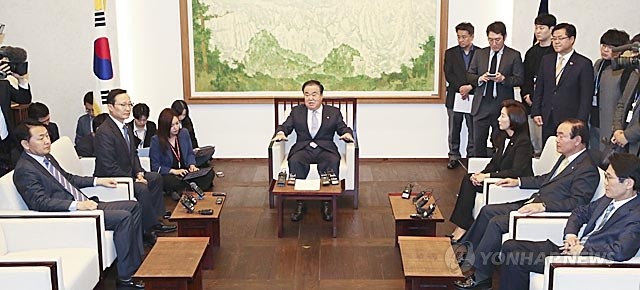 8일 문희상 국회의장 주재로 국회에서 여야 원내대표 회동이 열리고 있다. 왼쪽부터 바른미래당 김관영, 더불어민주당 홍영표, 문 의장, 자유한국당 나경원, 민주평화당 장병완, 정의당 윤소하 원내대표.