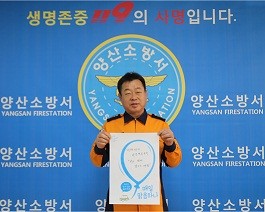 | ▲ 양산소방서, 김동권서장‘매일 맑음 하나’캠페인 동참사진 | ||