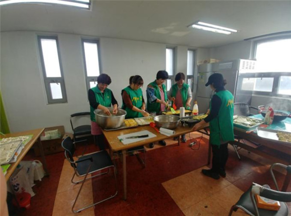 경기 수원시 권선구 서둔동 새마을부녀회는 8일 갓 만든 소고기 야채죽, 빈대떡, 배추겉절이, 된장 등 여러 반찬들을 지역내 저소득가정에 전달했다. 사진은 부녀회원들이 음식을 만들고 있는 모습. (사진제공=수원시청)