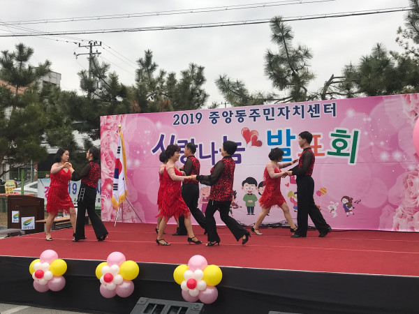 경기 여주시 중앙동 주민자치센터는 최근 행정복지센터내 주차장에서 지역주민 200여명이 참석한 가운데 ‘주민자치센터 사랑나눔 발표회’를 성료했다. 이날 노래 및 댄스스포츠 교실 수강생들의 공연이 펼쳐졌다. 사진은 공연이 진행되고 있는 모습. (사진제공=여주시청)