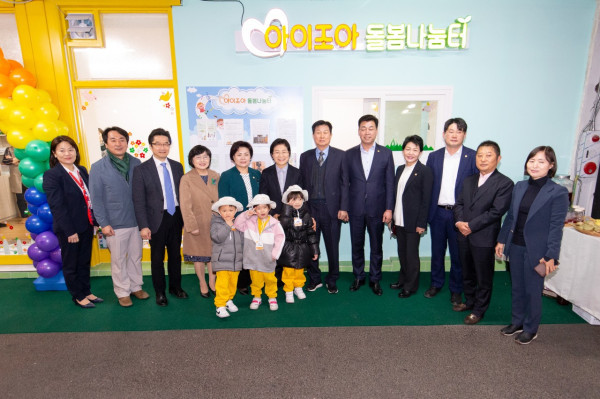 최근 은평구가 대림시장에서 아이들과 함께 전통시장을 이용하는 구민들의 편의 제공을 위해 조성된 ‘아이조아 돌봄나눔터’의 개소식을 열고 본격 운영에 들어갔다. 사진은 개소식에 참석한 김미경 구청장(왼쪽 여섯 번째)과 구의원, 관계자들이 기념촬영을 하고 있는 모습. (사진제공=은평구청)
