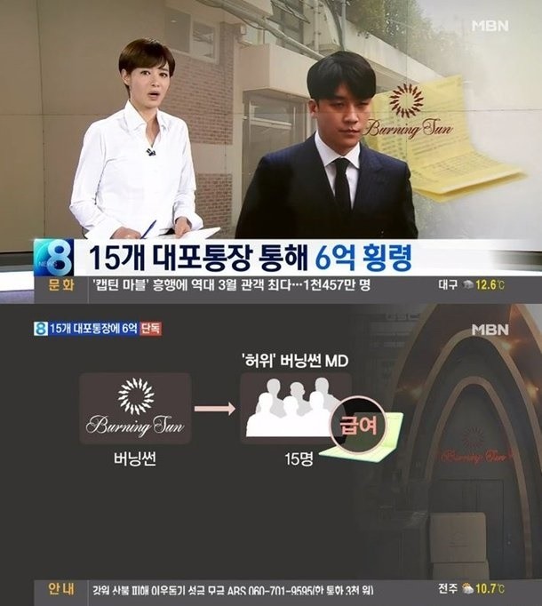 11일 방송된 MBN '뉴스8'은 가수 승리의 횡령 혐의에 대해 보도했다. 경찰이 클럽 버닝썬의 자금 횡령 루트로 경찰이 파악한 대포통장은 15개, 금액은 6억 원에 이르는 것으로 확인됐다.