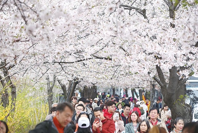 벚꽃 반 사람 반