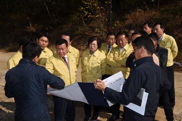 | ▲ 강화해안순환도로 공사 현장을 방문한 강화군의원들이 관계자들과 이야기를 나누고 있다. (사진제공=강화군의회) | ||
