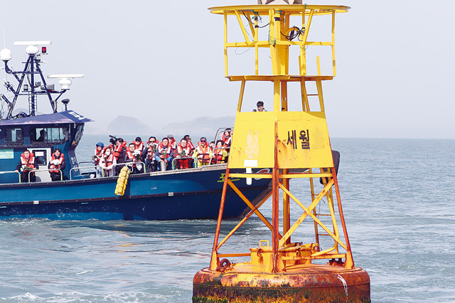세월호 참사 5주기를 맞은 16일 단원고등학교 희생자 유가족이 전남 진도 맹골수도 인근 사고해역을 찾아 아이들 이름을 외치고 있다. /연합뉴스