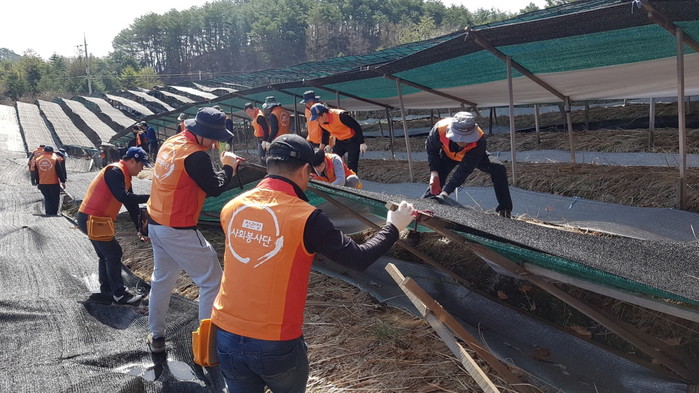 4월 폭설로 피해를 입은 강원・경북지역 계약농가 삼포는 총 281,000㎡(약 85,000평)로 KGC인삼공사는 폭설피해 현황 파악 후, 즉시 임직원 봉사단을 결성하여 4월 16일 붕괴된 해가림 구조물 복구 작업을 진행하고 지원물품을 전달했다.
